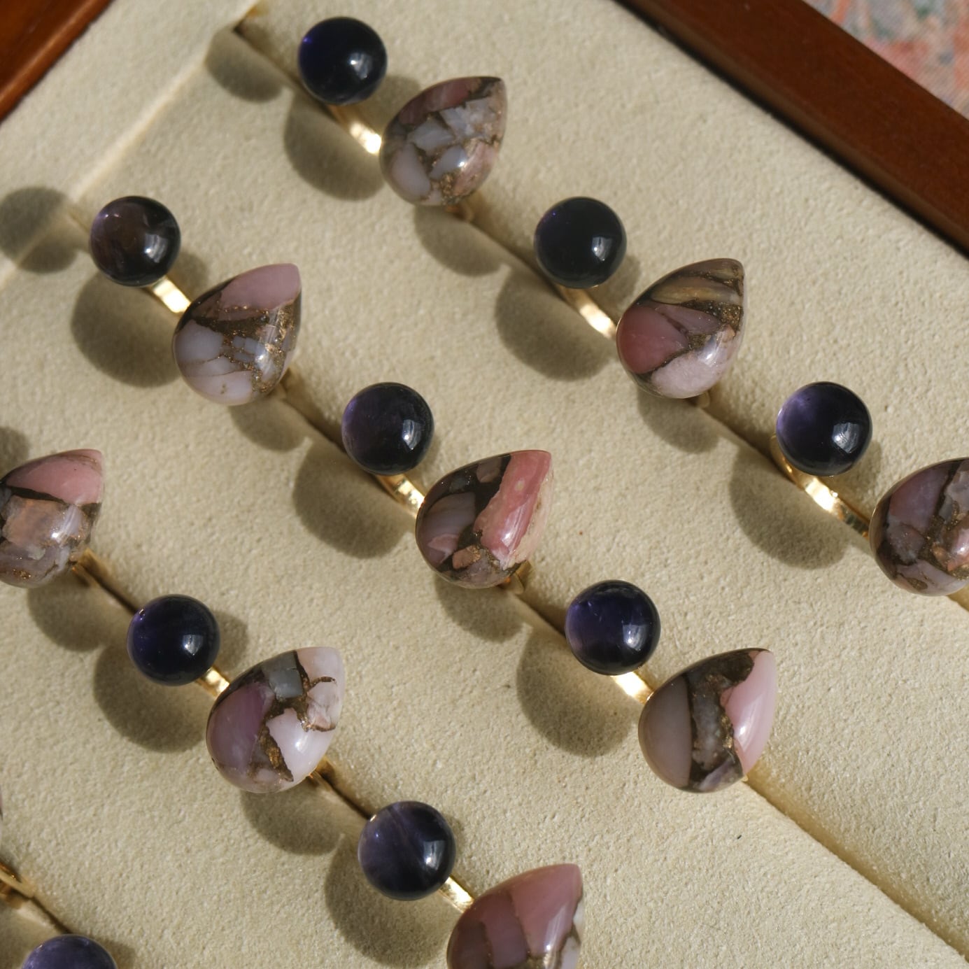 厳選して天然石をお選びしておりますが、天然素材の為、ひとつひとつ模様や色合い石の厚みが若干異なります。小さな傷やカケ、クラックがある石もございます。天然石は同じ模様や色合いの物は一つとしてない世界にたった一つの天然石です。その個性をご縁としてお迎えいただき、天然素材ならではの魅力をお楽しみいただけますと幸いです。