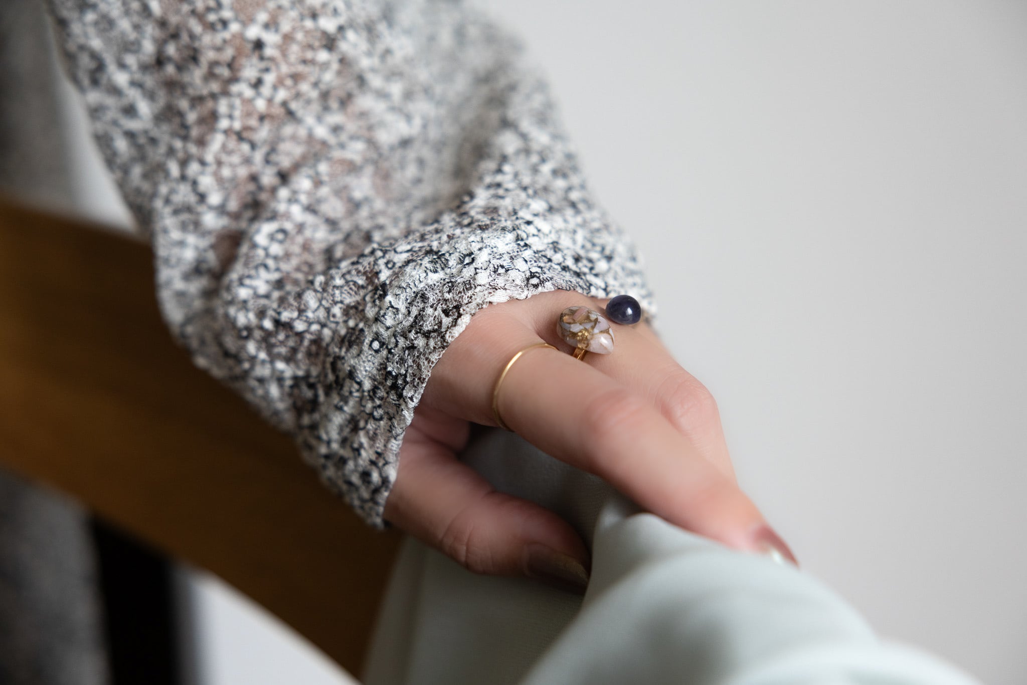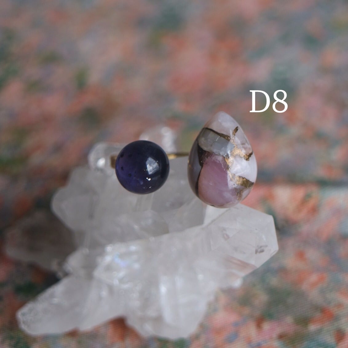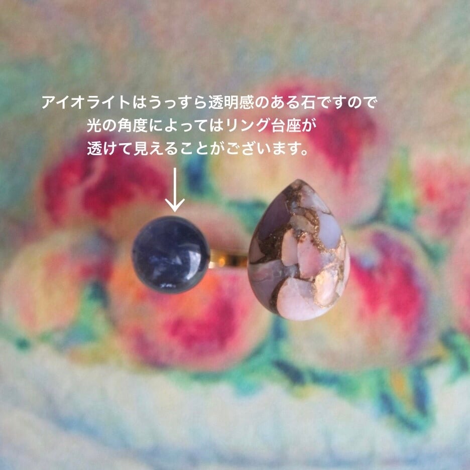 印象的なアイオライトを添えた