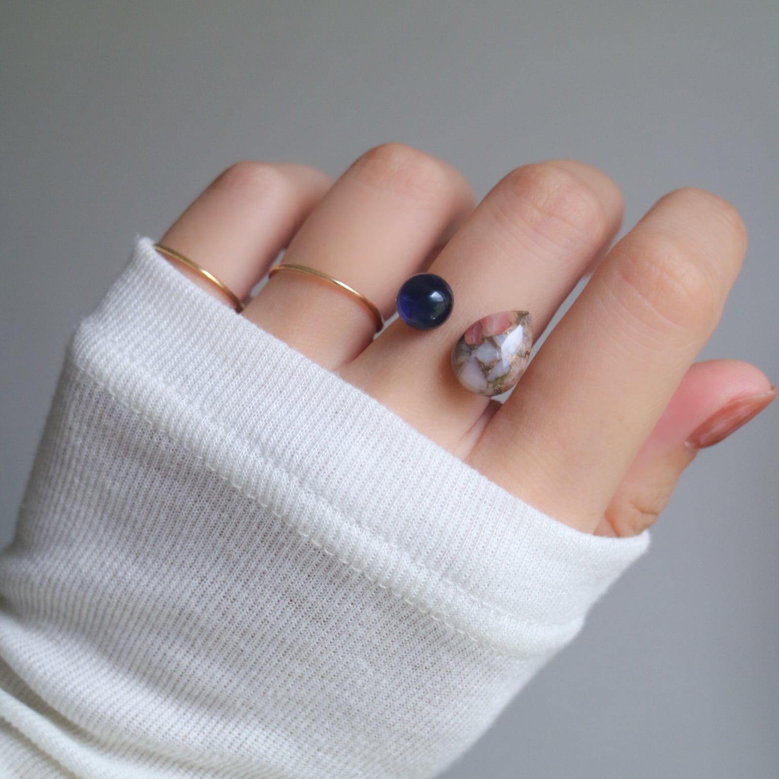 厳選して天然石をお選びしておりますが、天然素材の為、ひとつひとつ模様や色合い石の厚みが若干異なります。小さな傷やカケ、クラックがある石もございます。天然石は同じ模様や色合いの物は一つとしてない世界にたった一つの天然石です。その個性をご縁としてお迎えいただき、天然素材ならではの魅力をお楽しみいただけますと幸いです。