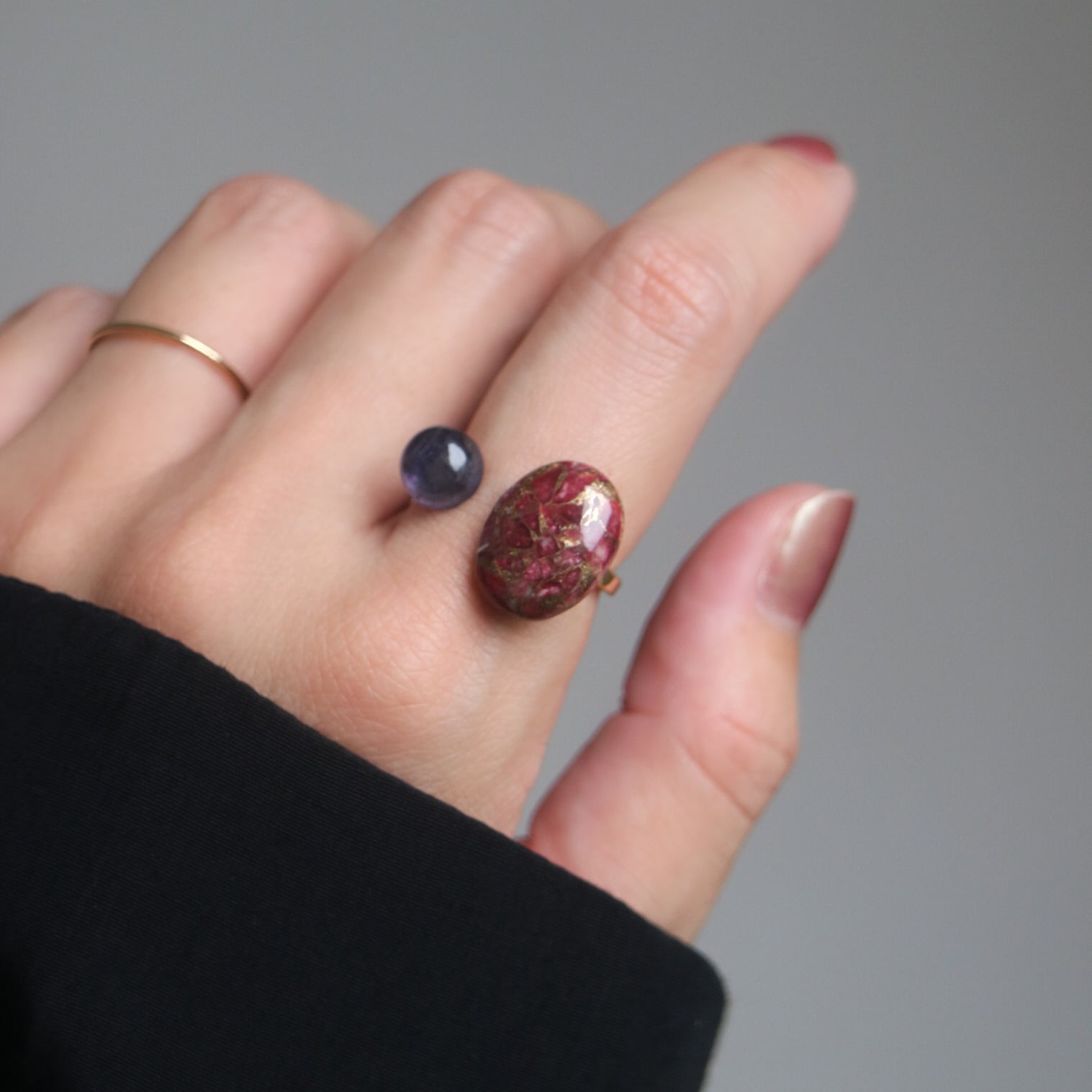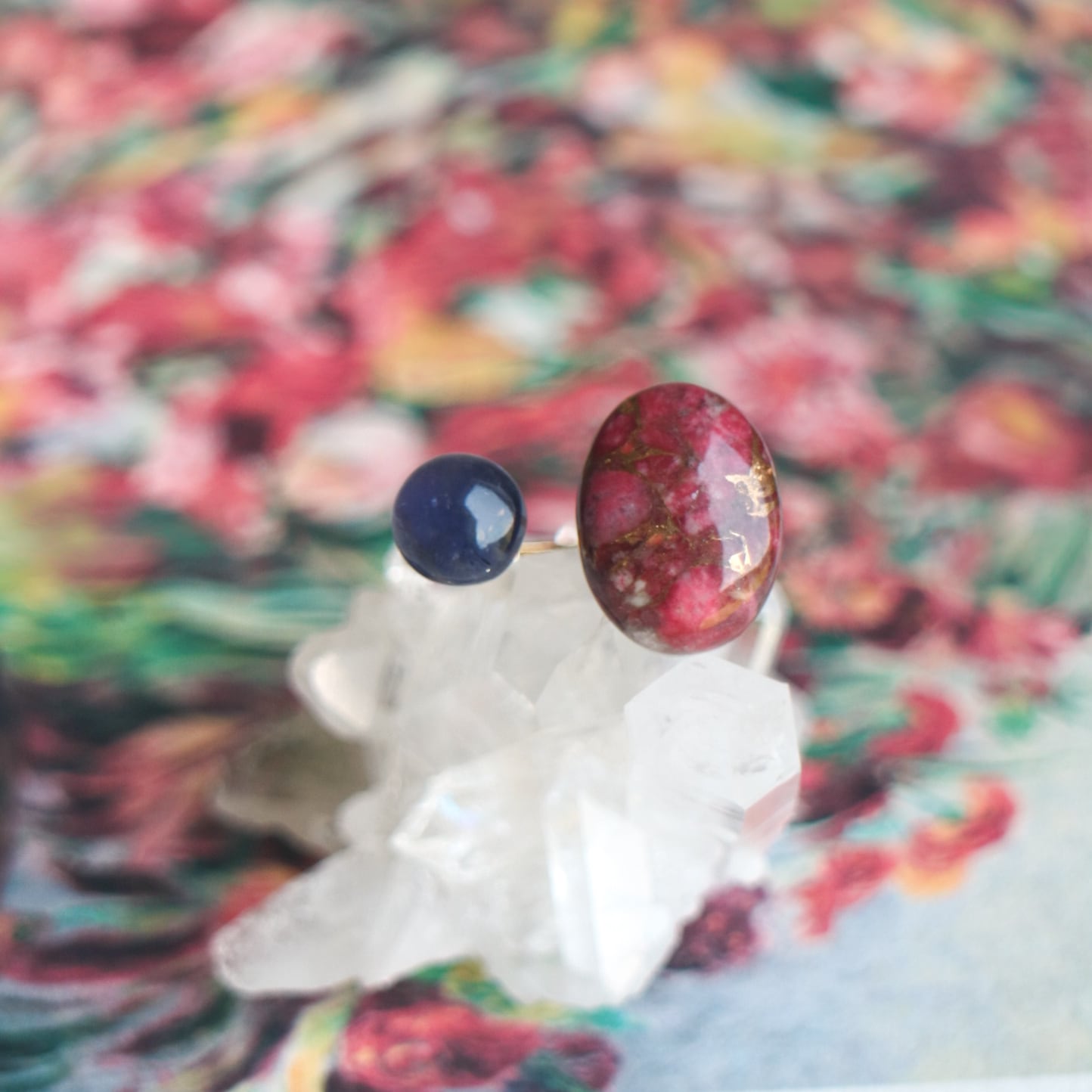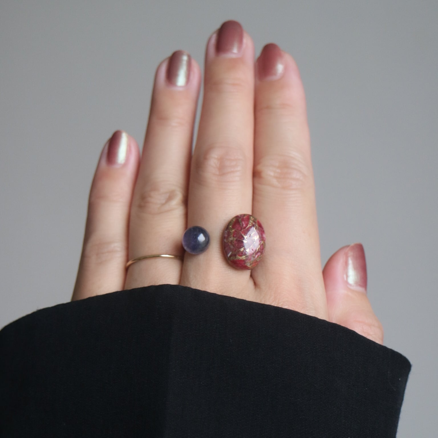 アイオライトを添えたフリーリングです。