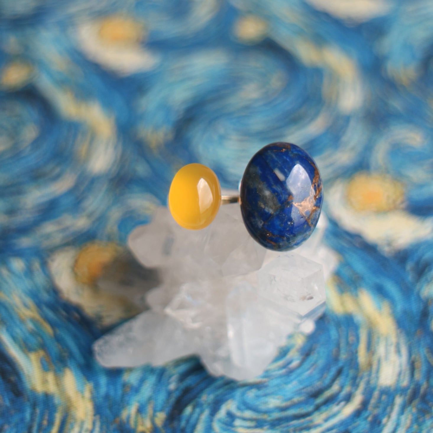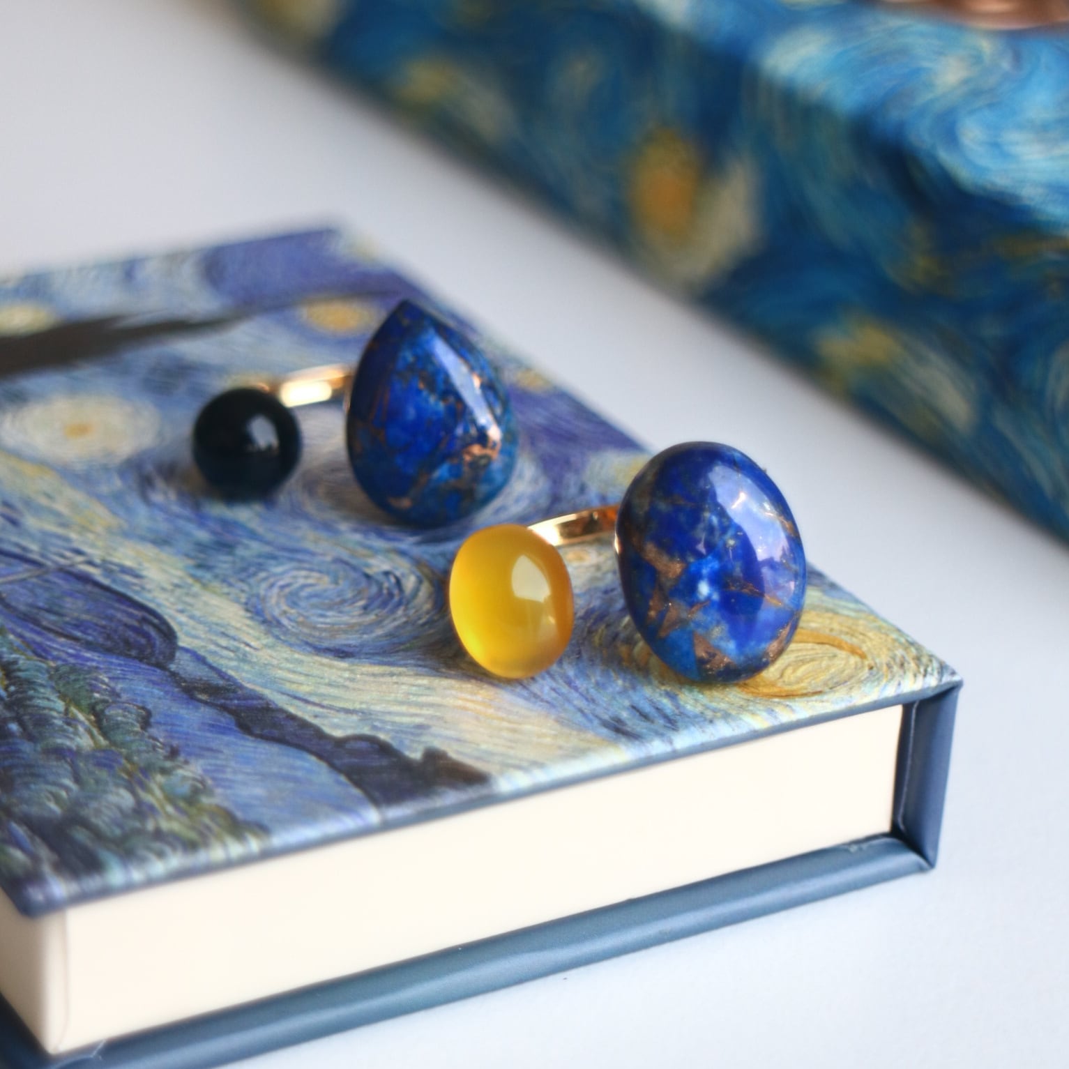 ゴッホ『星月夜』をモチーフにした天然石リング。
