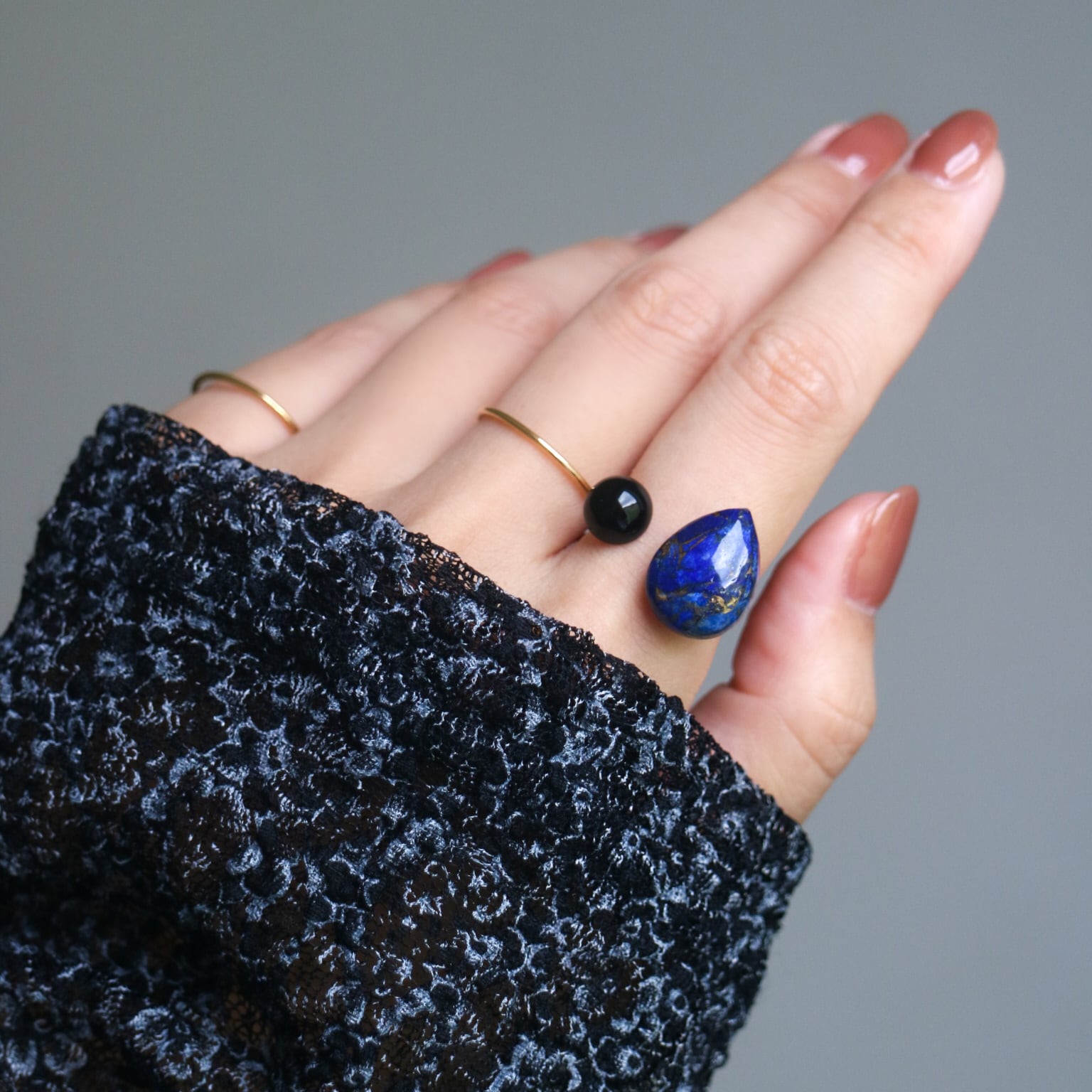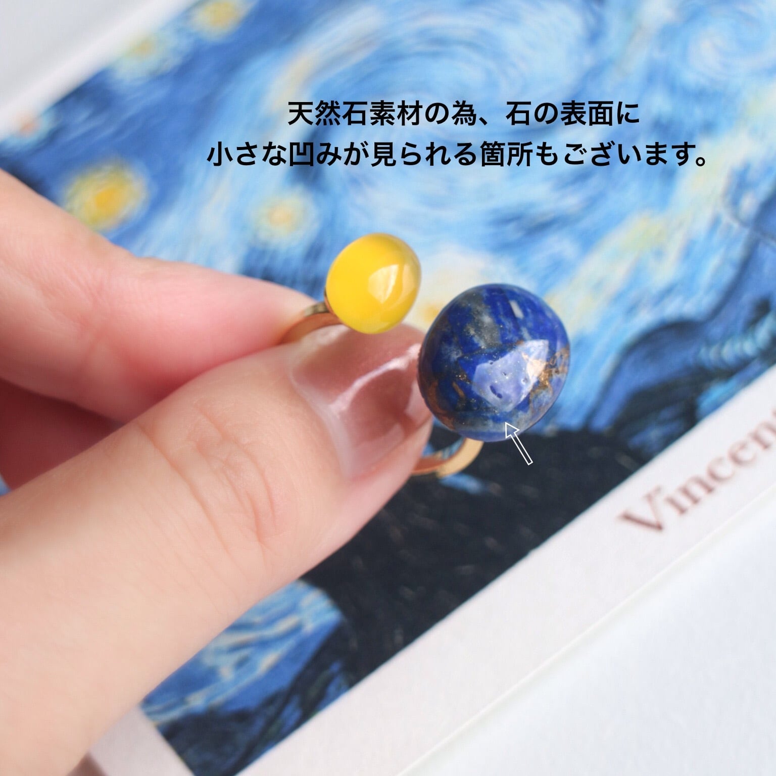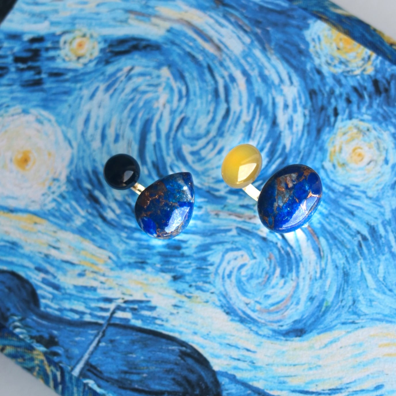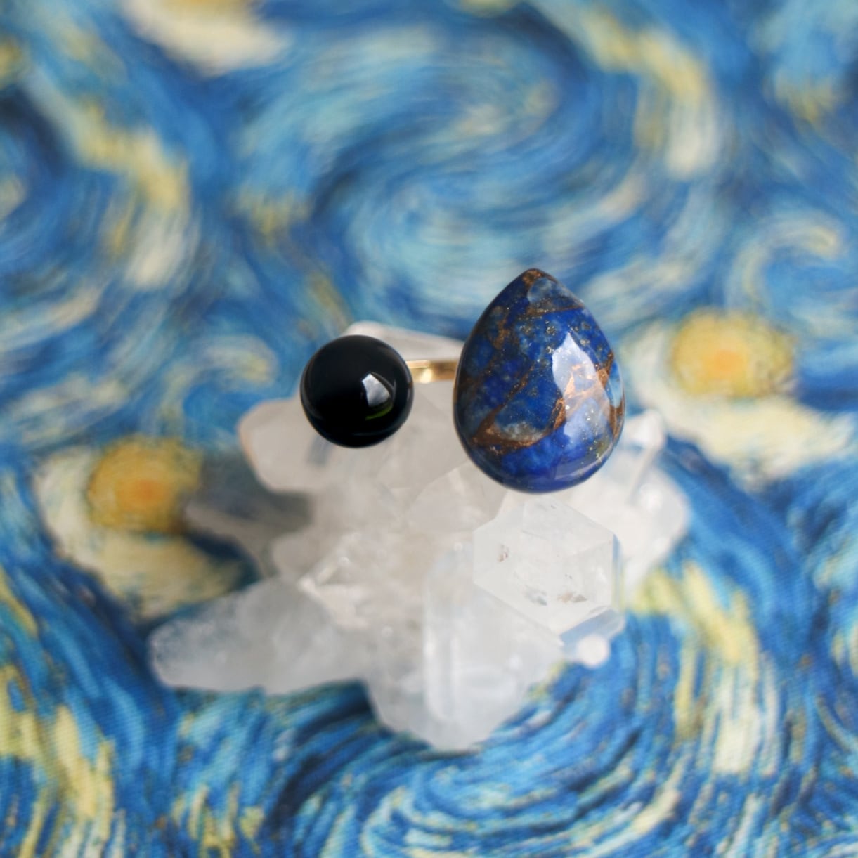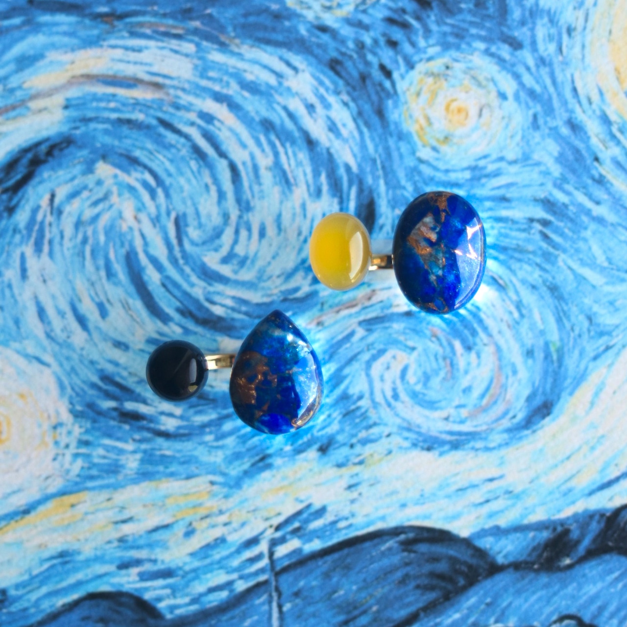 ゴッホ『星月夜』をモチーフにした天然石リング。