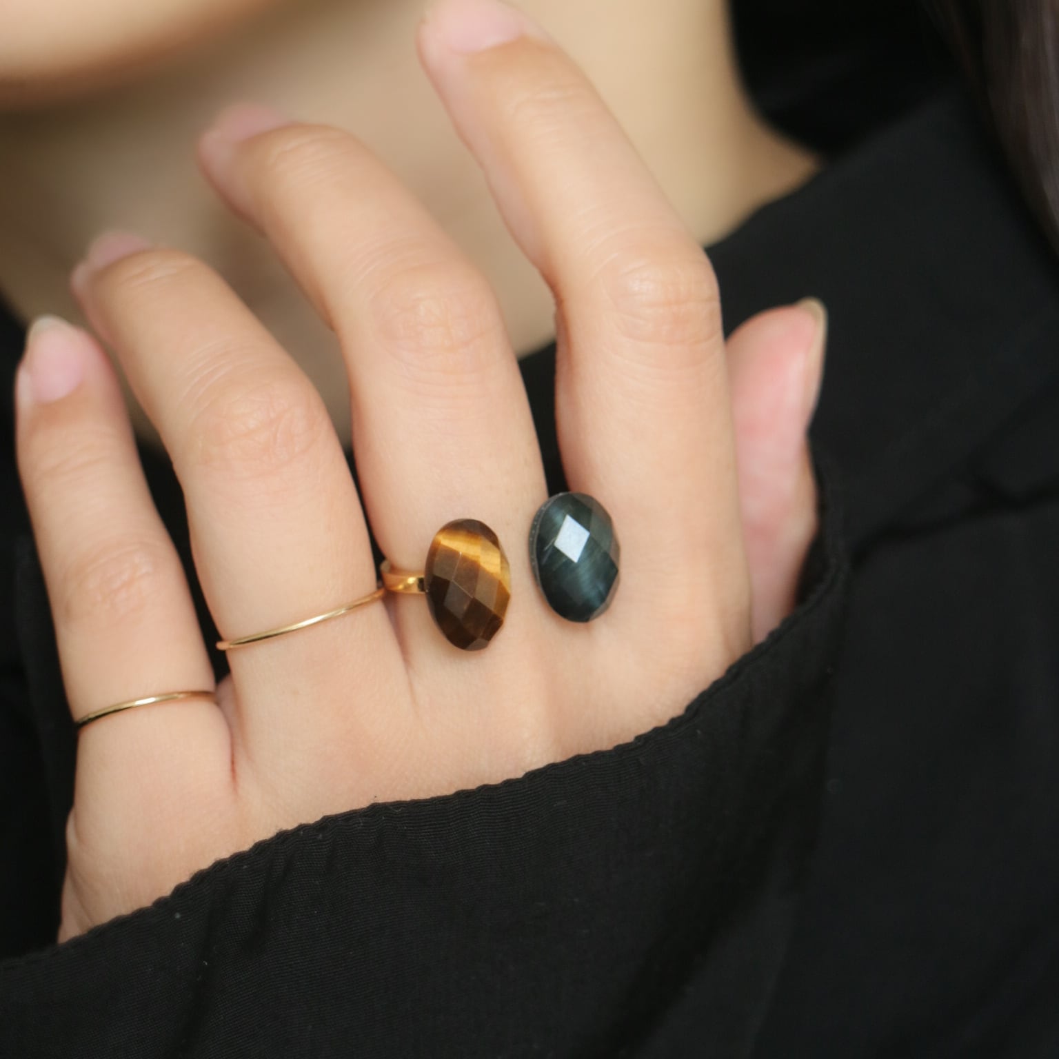 光が当たった時に虎の目のように光ることから「タイガーアイ」と名付けられました。