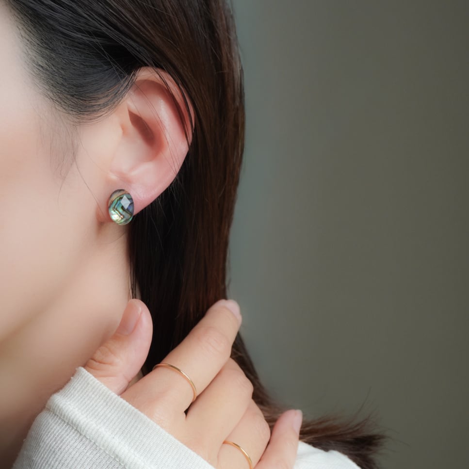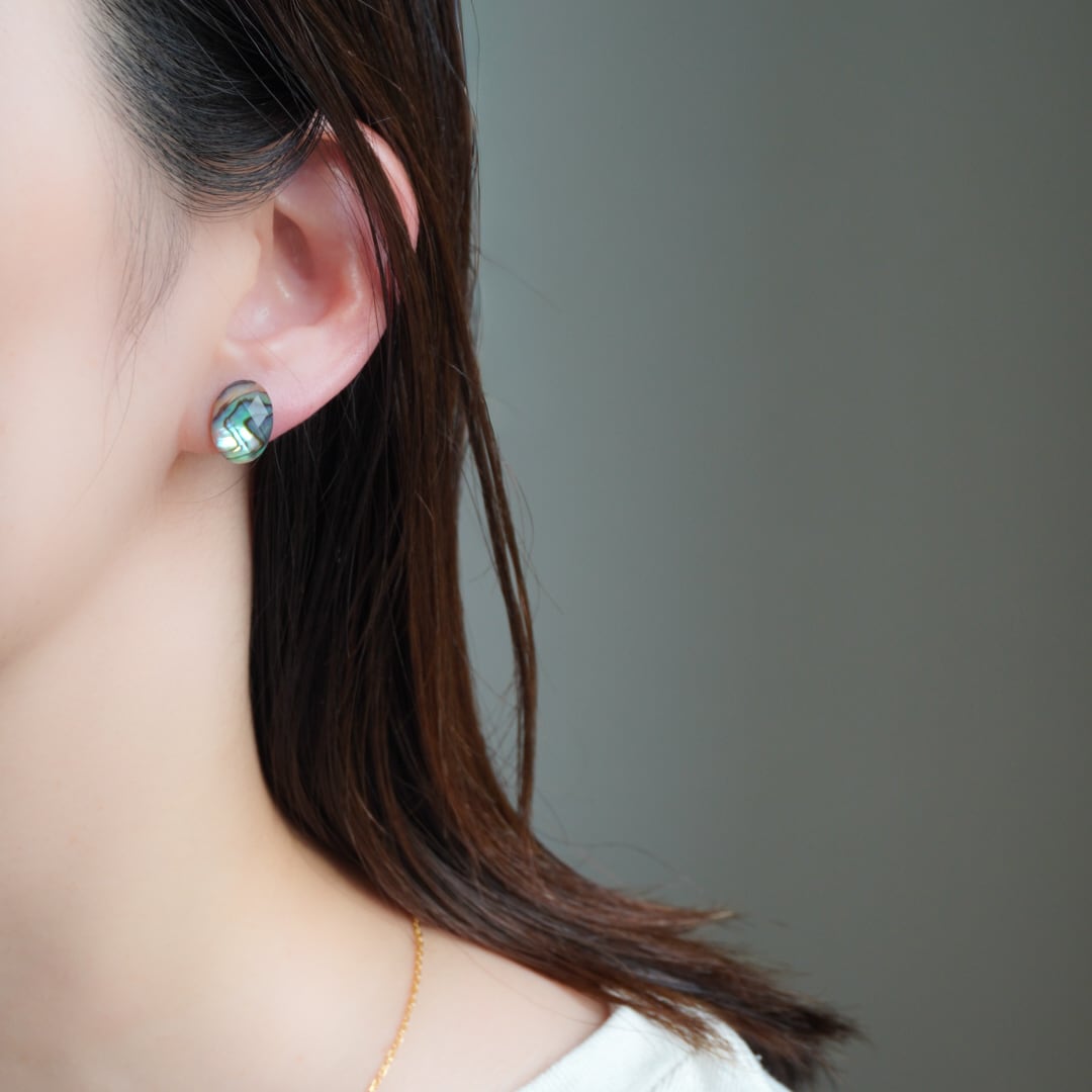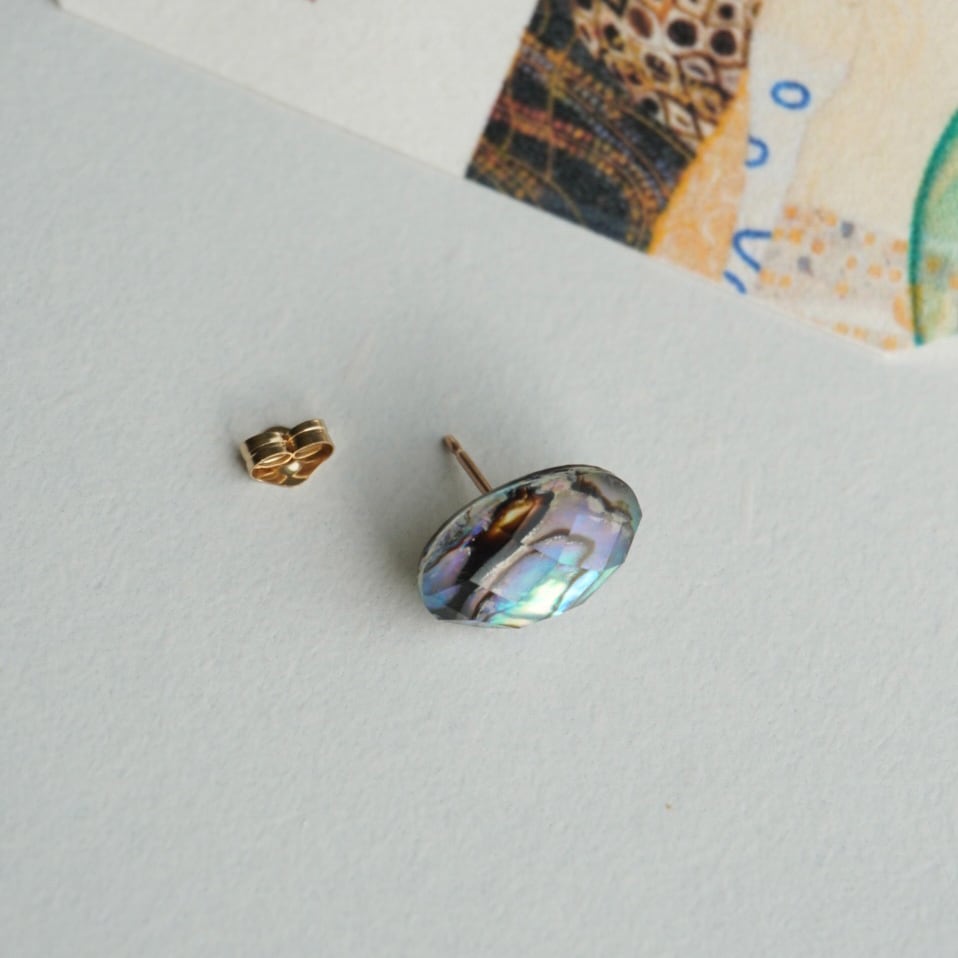 虹色に輝くアワビの貝殻です。採取された時点では白い貝殻ですが、時間をかけて丁寧に磨くことで美しい虹色の輝きが現れます。