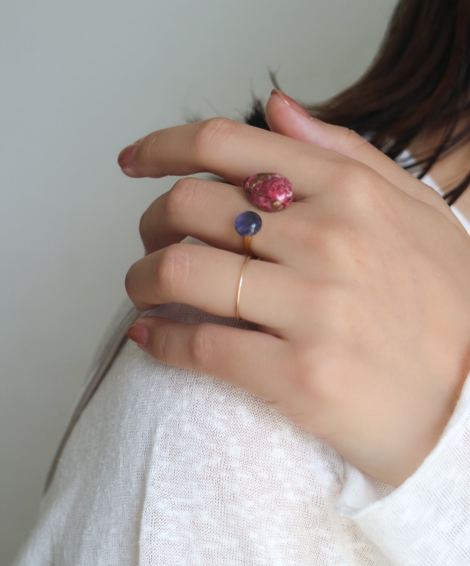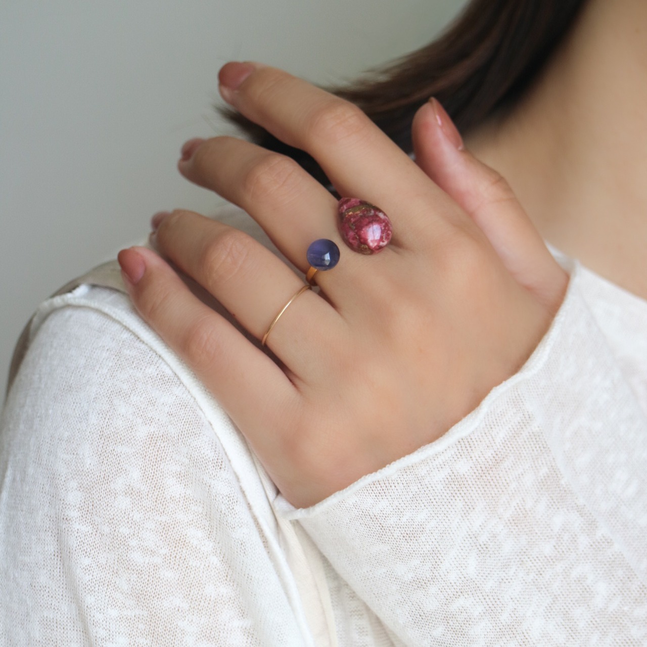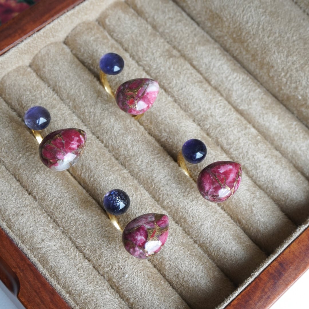 3月誕生石です。多色性を持つアイオライトは見る角度によって色が変わる性質を持ちます。