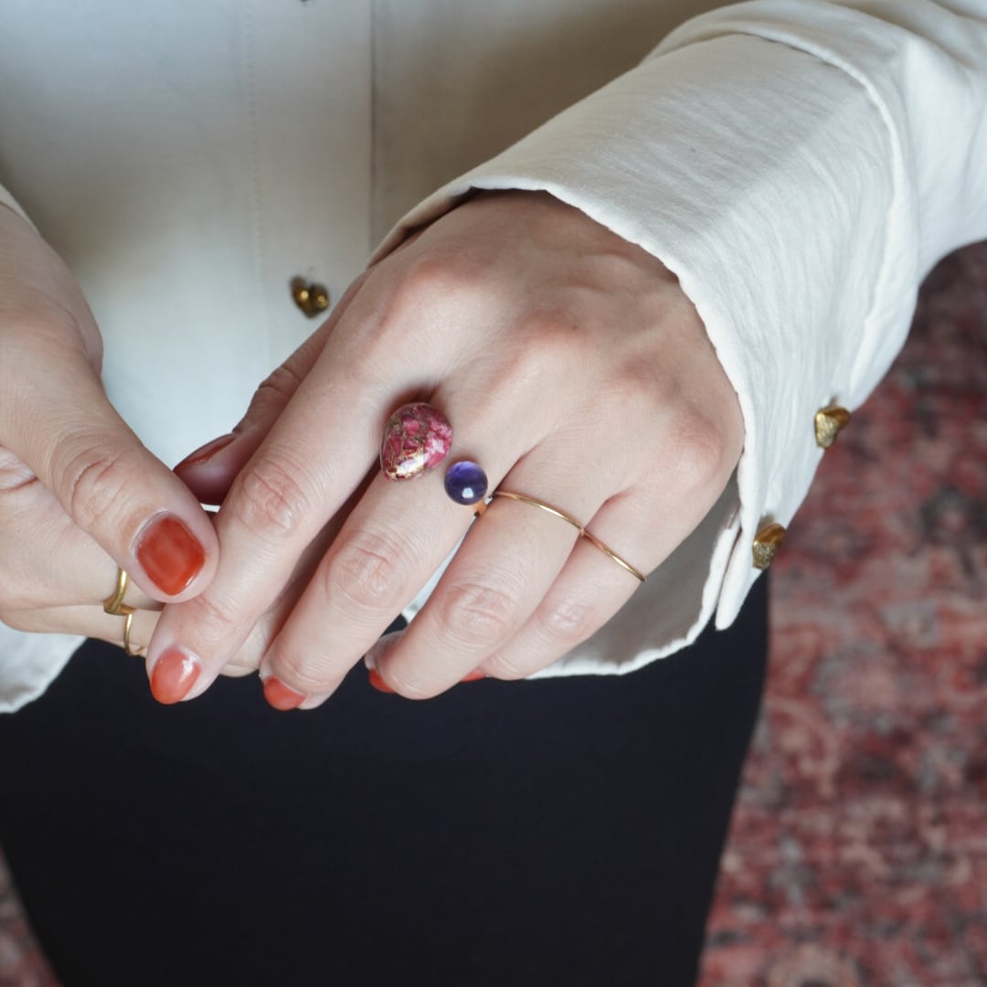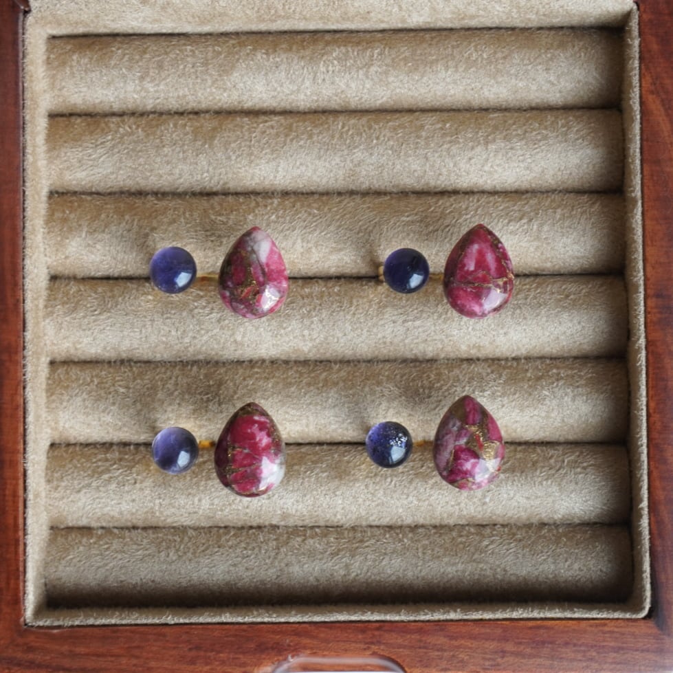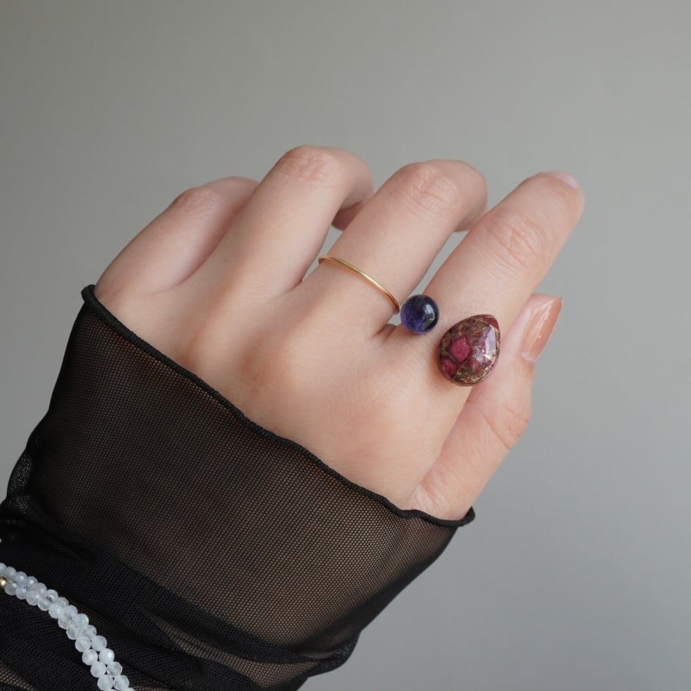 3月誕生石です。多色性を持つアイオライトは見る角度によって色が変わる性質を持ちます。