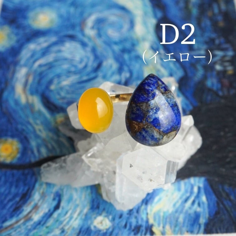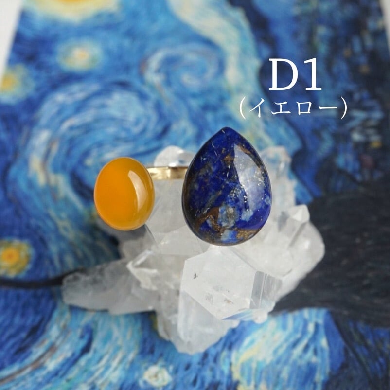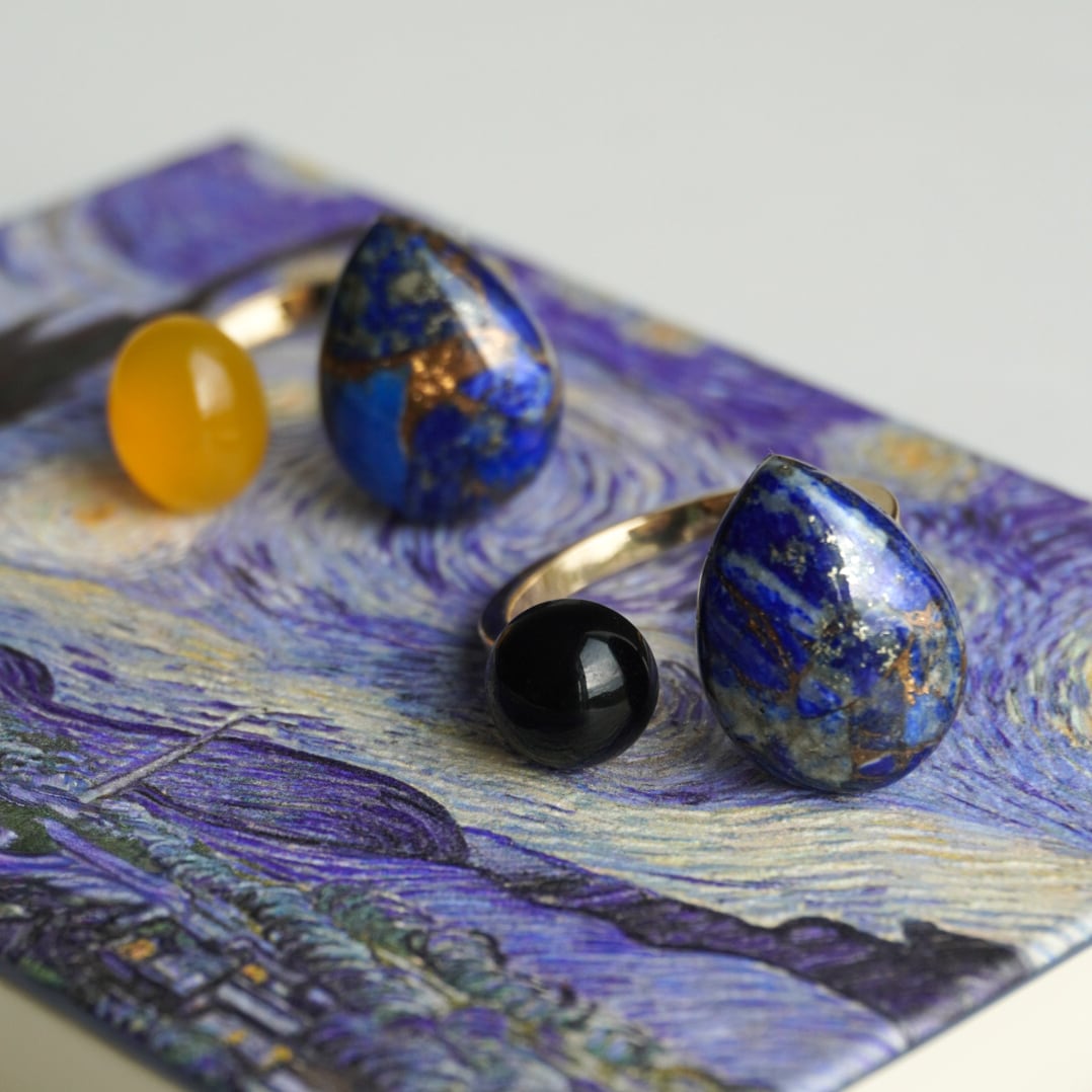 ゴッホ『星月夜』をモチーフにした天然石リング。