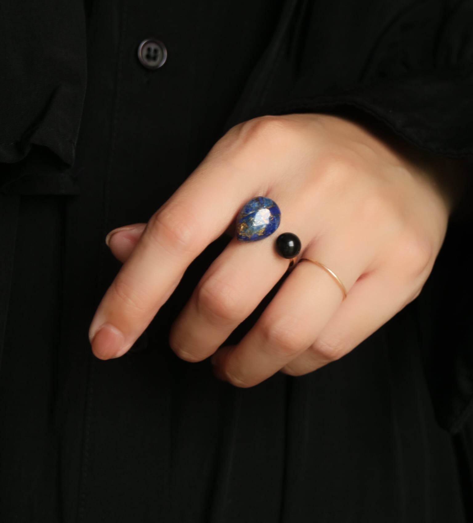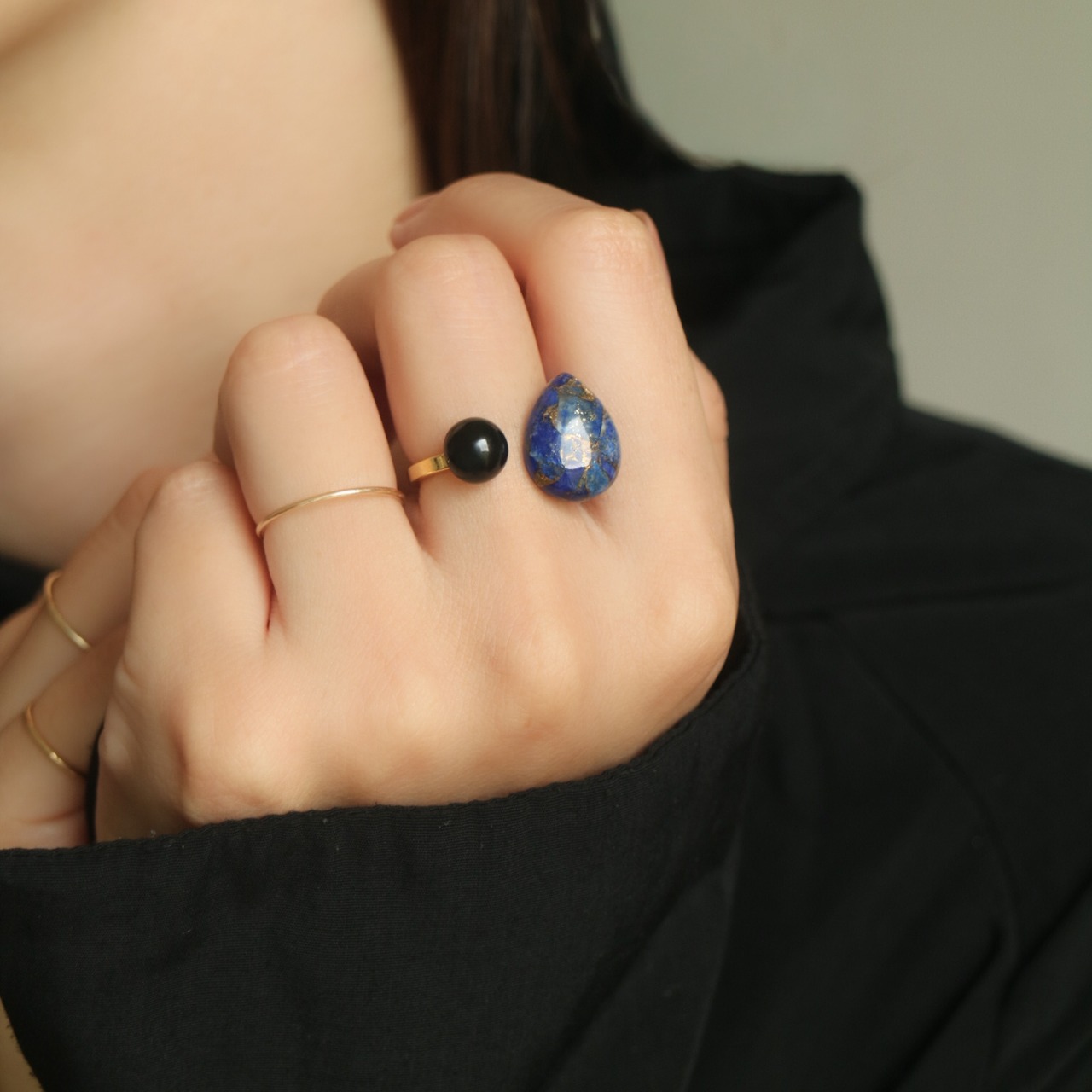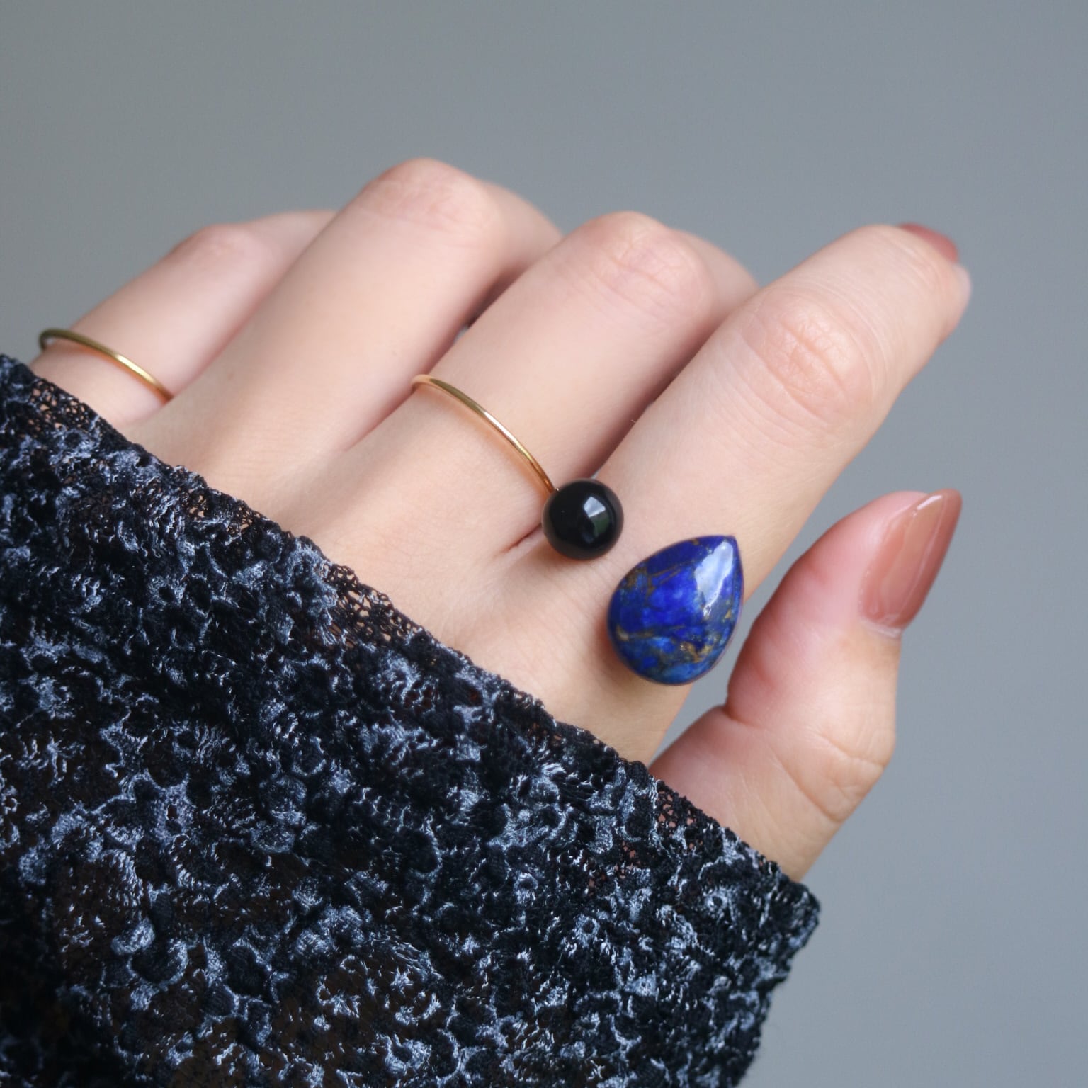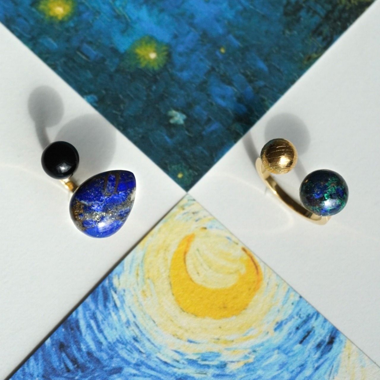 ゴッホ『星月夜』をモチーフにした天然石リング。