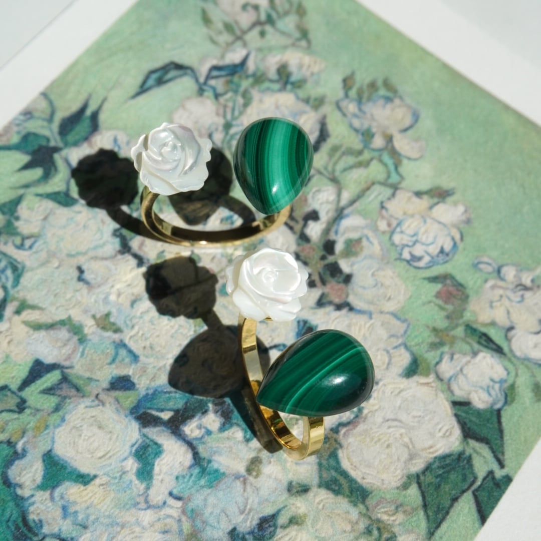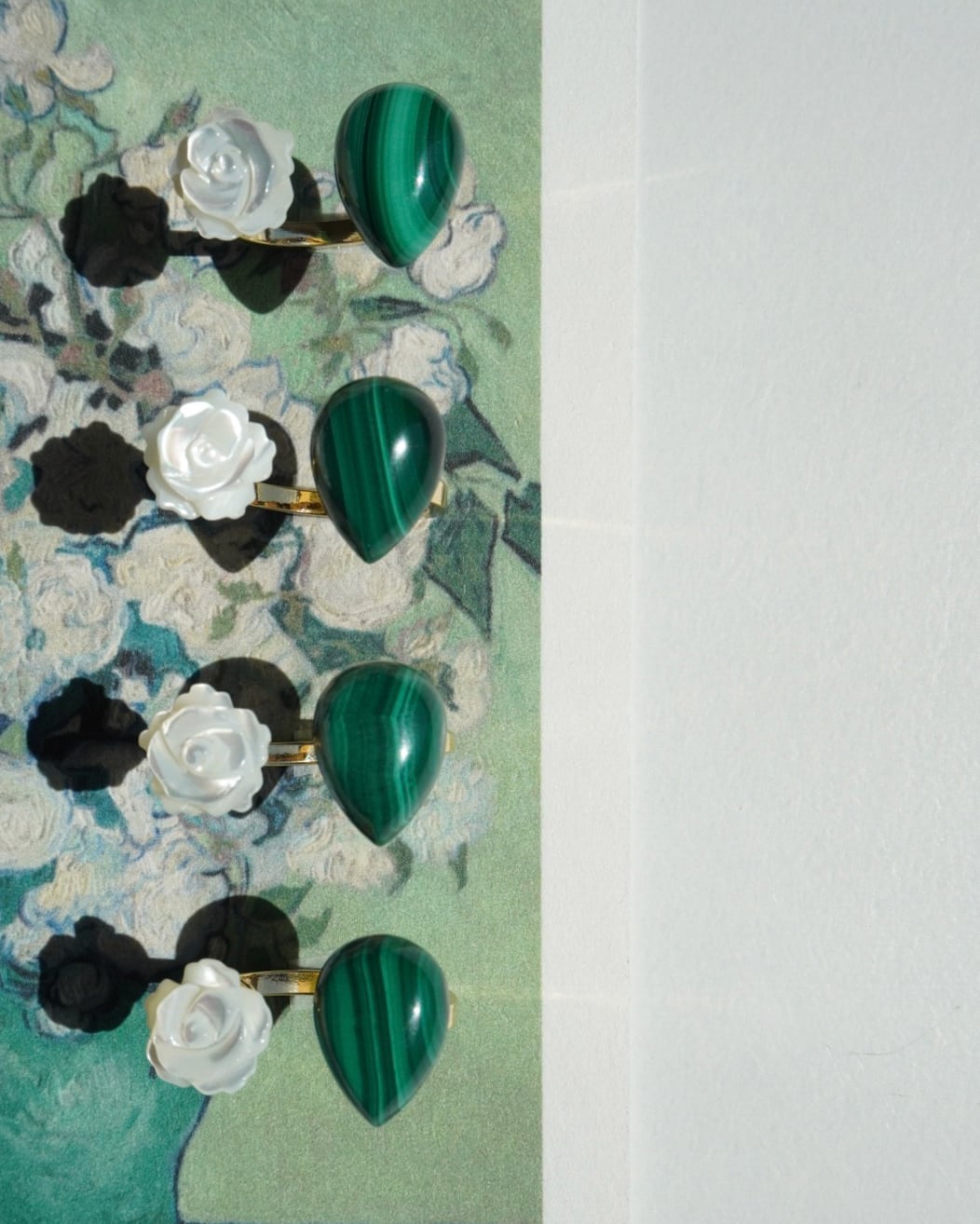強いヒーリング効果を持つとされるマラカイト。その鮮やかなグリーンは、癒しをもたらし心を穏やかにすると言われています。