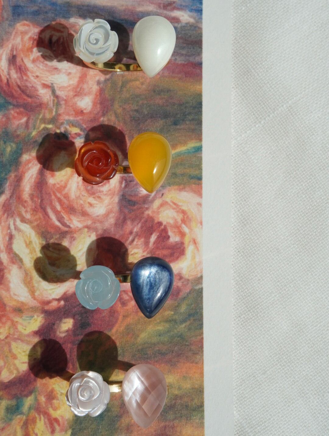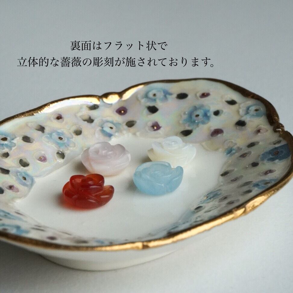 天然石に繊細な薔薇の彫刻を施し