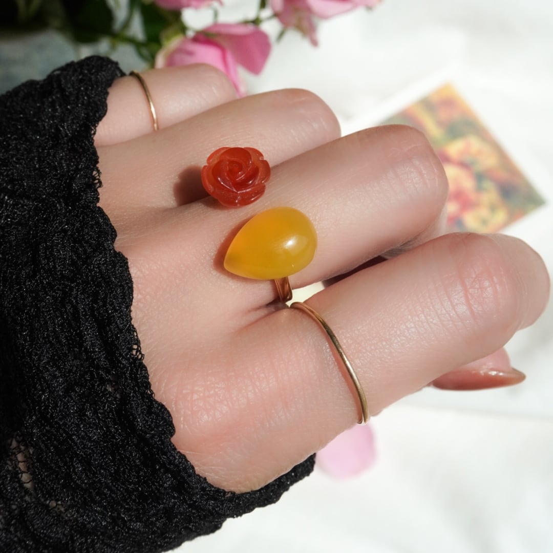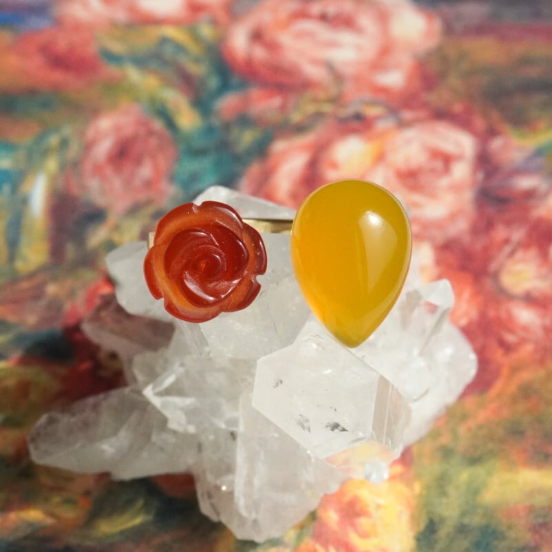 天然石に繊細な薔薇の彫刻を施し