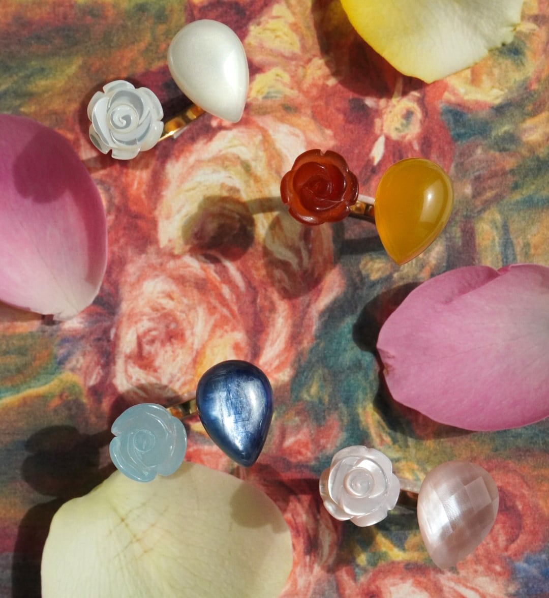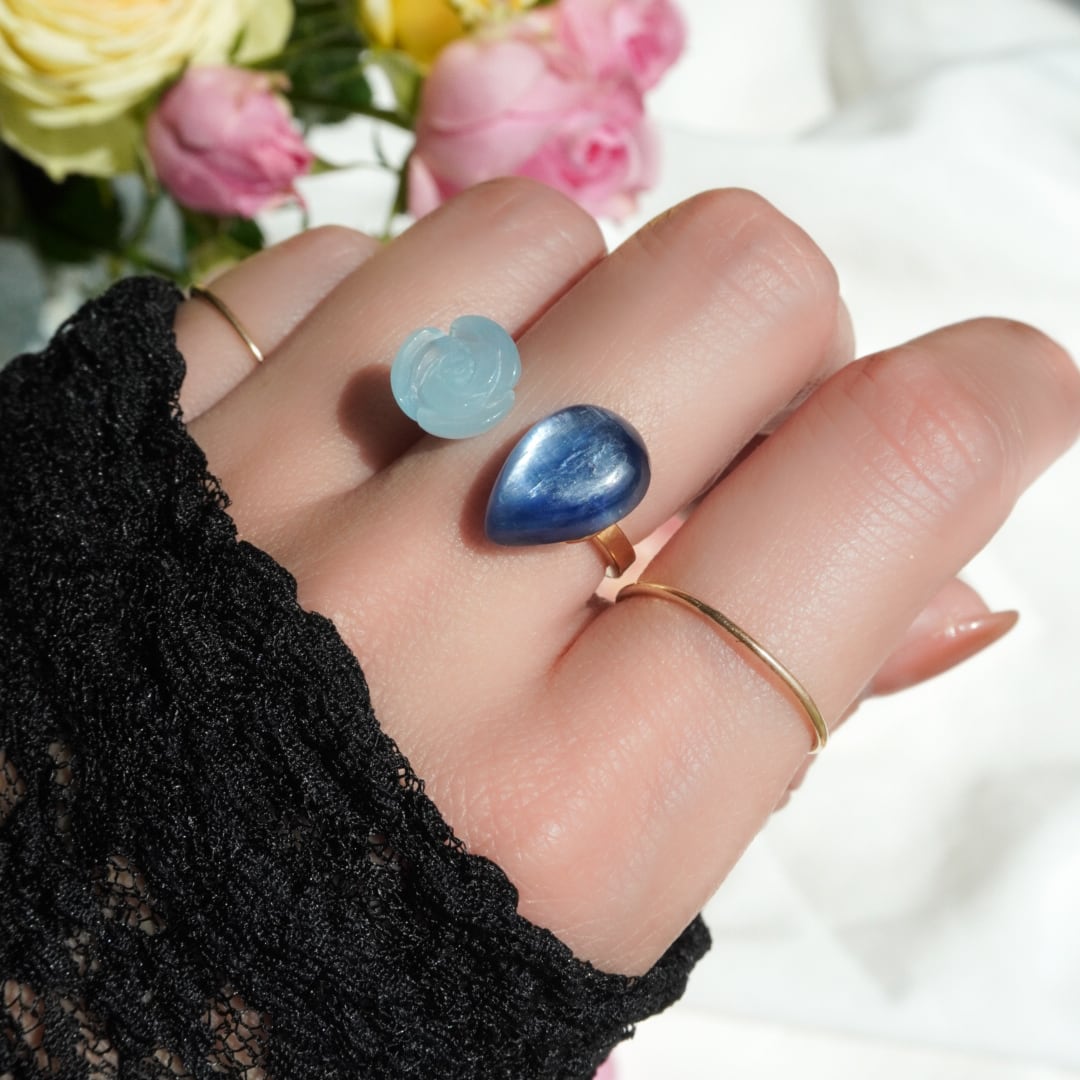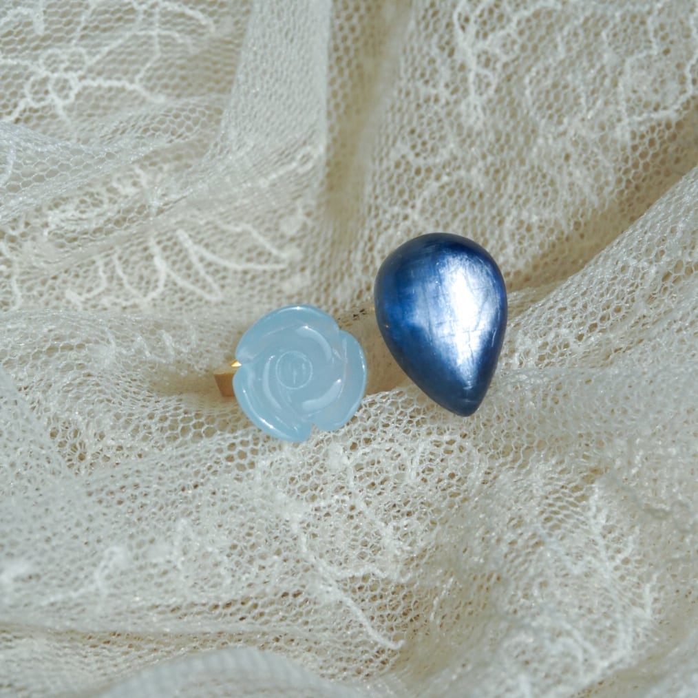 ◎うっすら透明感のある石のため、光の角度によってはリング台座がうっすら透けて見える場合もございます。